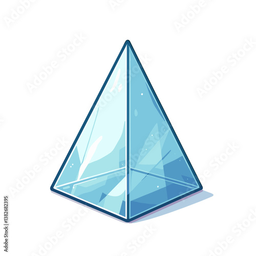 Vector glass pyramid in transparent blue crystal style on white background. Perfect for geometric decorations, modern design elements and luxury brand identity graphics.