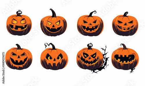 Vector Halloween Pumpkins with Scary Faces Set for Seasonal Design Projects