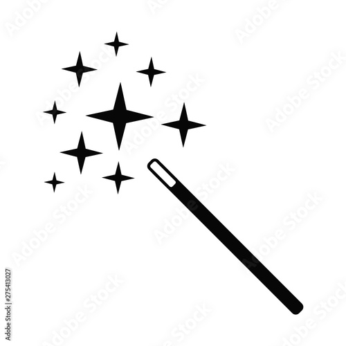 Vector high quality monochromatic icon logo illustration of a magician wand stick with magic sparkles isolated on white background