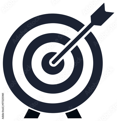 Vector icon of target with arrow hitting bullseye, symbolizing goal achievement, accuracy, and success