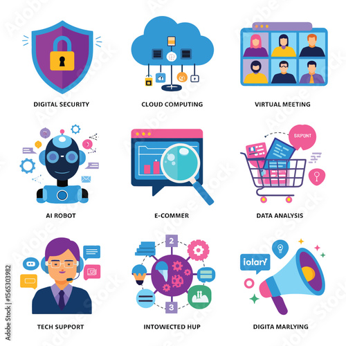 vector icons for robots, artificial intelligence, and the assistance provide in work and security