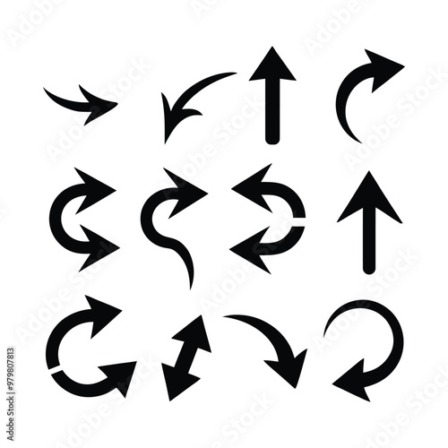 Vector icons of arrows including rotate, redo, and circle designs for business and education.