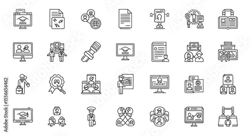 Vector Icons Set of Collection of Line Icons Online Education Teamwork and Business Concepts. Vector Illustrations. EPS Editable