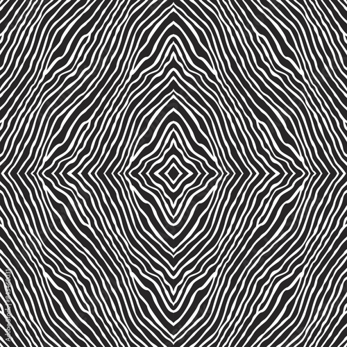 Vector ikat seamless pattern from black and white wavy stripes, zebra skin prints