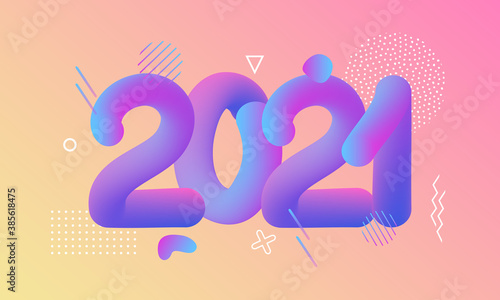 Vector Illustration 2021 HAPPY NEW YEAR hand drawn round geometric text lettering. Typography poster, banner, greeting card, print, template for Merry Christmas and chinese Year of the Ox celebration