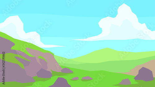 vector illustration, abstract landscape, clouds, rocks, cliff, hill