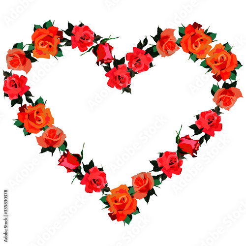 vector illustration, floral frame, roses, isolate on a white background, design for postcards, wedding invitations, greetings