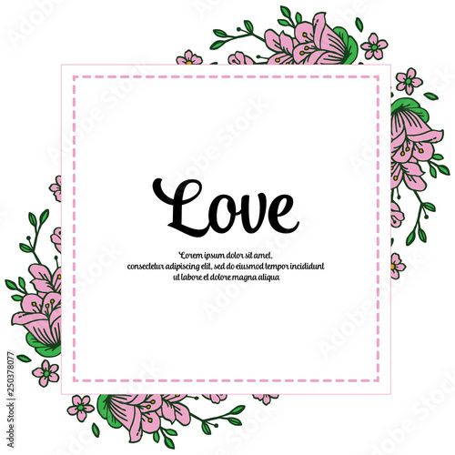 Vector illustration frame flower for gift beloved with lettering hand drawn
