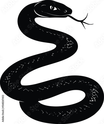 Vector illustration: Mysterious black snake, coiled, elegant, dark style.