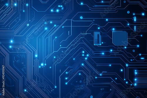 Vector illustration of a blue circuit board background featuring abstract digital tech patterns, with ample space for text or titles.