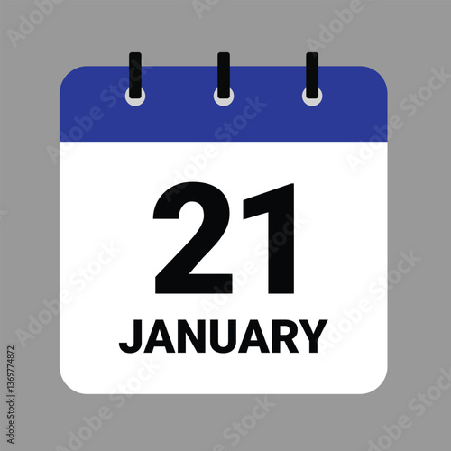 Vector illustration of a calendar icon showing dates and events. JAHUARY 21 Calendar Icon – Flat Design, Minimalist Date Illustration