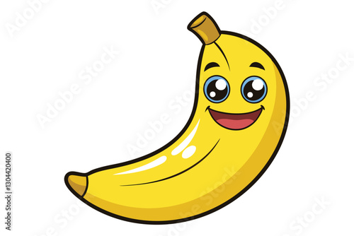 Vector illustration of a cheerful banana character with a big smile set against a light green background