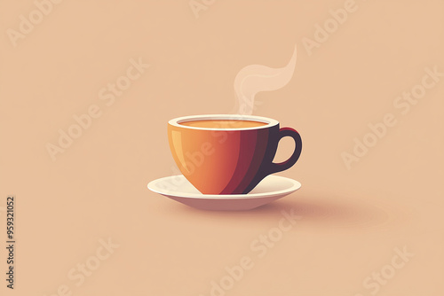 Vector Illustration of a Hot Coffee Cup on a Plain Color Background