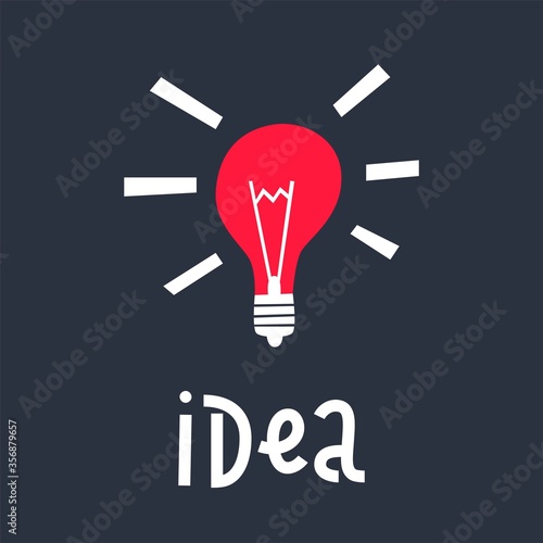 Vector illustration of a light bulb, hand lettering Idea - Icon on dark grey background, isolated