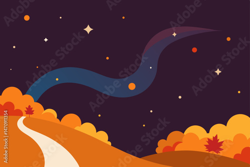 vector illustration of a night landscape