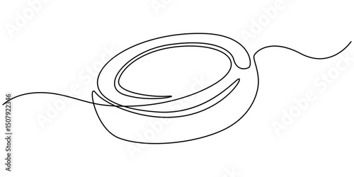 Vector illustration of A pink soap bar is floating surrounded by bubbles, representing the concept of hygiene and cleanliness, continuous line drawing of bar soap.one line drawing of bath soap single