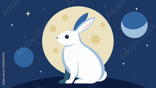 Vector Illustration of a Rabbit Silhouette Sitting on a Full Moon. Perfect for: Mid-Autumn Festival, Festive Decor, Cultural Celebrations