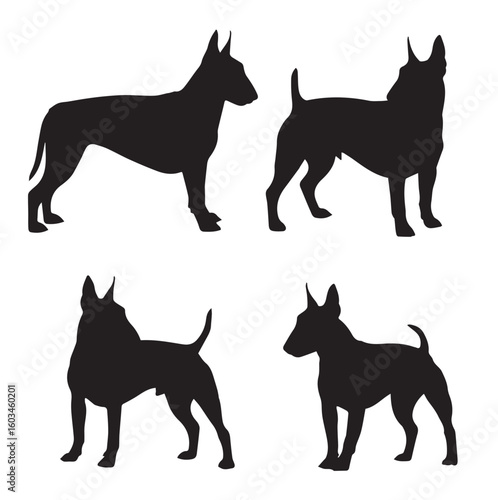 vector illustration of bull terrier silhouette set, Black & White silhouette set
