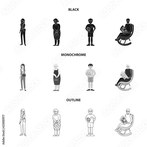 Vector illustration of character and avatar logo. Collection of character and portrait stock vector illustration.