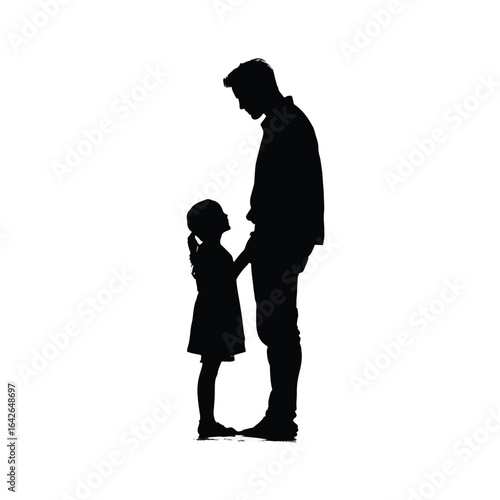 vector illustration of dad and daughter silhouette set, Black & White silhouette set