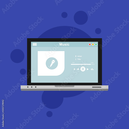 Vector illustration of music player flat design concept. Can be used for workflow layout template, banner, marketing, infographics.