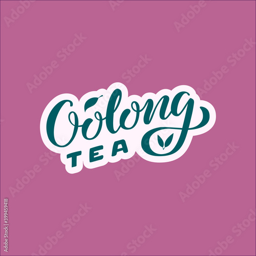 Vector illustration of oolong tea brush lettering for package, banner, flyer, poster, bistro, café, shop signage, advertisement design. Handwritten text for template, sign, billboard, print