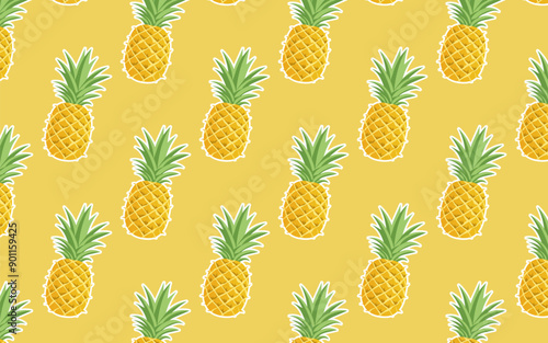 Vector Illustration Seamless Tropical Fruit, Pineapple with Blank Background