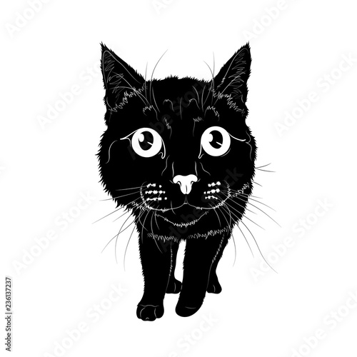 Vector illustration. The black silhouette of a standing cat
