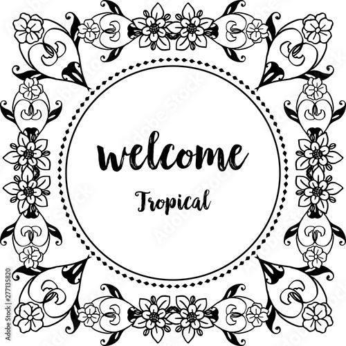 Vector illustration vintage flower frame with decorative of lettering wellcome tropical