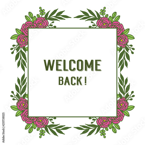 Vector illustration welcome greeting card with pink flower frame texture hand drawn