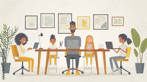 vector illustration with minimal style of an office desk with people