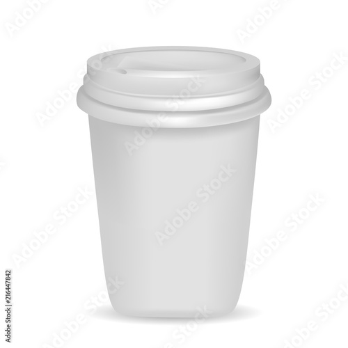 Vector image of a realistic plastic cup with lid. 3d plastic cup