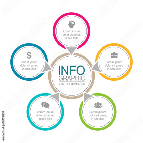 Vector infographic template, circle with 5 steps or options. Data presentation, business concept design for web, brochure, diagram.