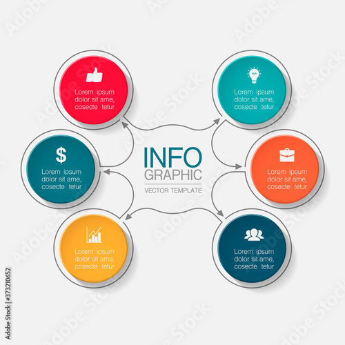 Vector infographic template, circle with 6 steps or options. Data presentation, business concept design for web, brochure, diagram.