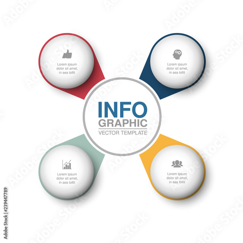 Vector infographic template for circular diagram, graph, presentation, chart, business concept with 4 options.