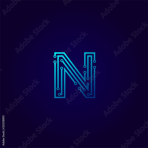 Vector Letter N logo design concept, Technology and digital abstract dot connection cross. vector illustration