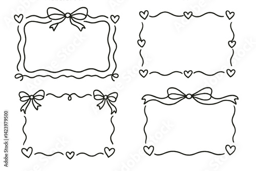 Vector line set icons featuring decorative frames with bows and hearts for various design purposes