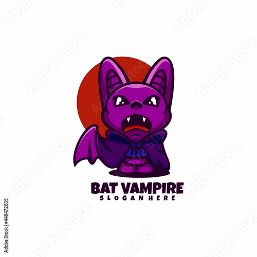 Vector Logo Illustration Bat Vampire Simple Mascot Style.