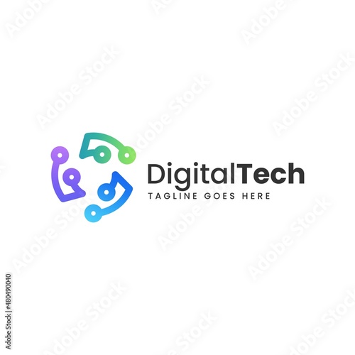 Vector Logo Illustration Digital Tech Gradient Line Art Style.