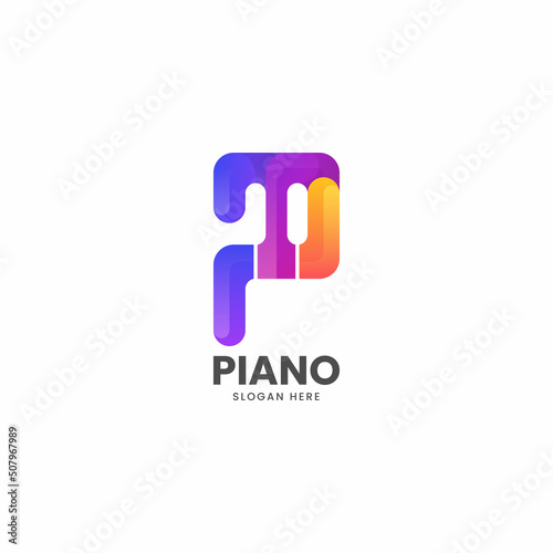 Vector Logo Illustration Piano Letter P Gradient Colorful Style.
