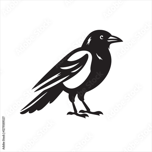 Vector magpie silhouette black and white