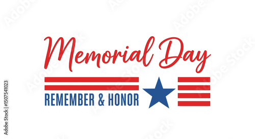 Vector memorial day graphic with stripes, star, and remember and honor text in patriotic theme design element on transparent background