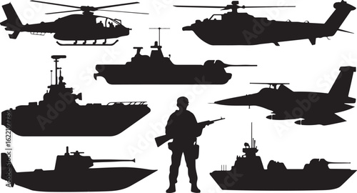 Vector military silhouettes set