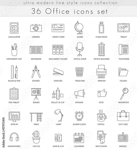 Vector office ultra modern outline line icons for web and apps.