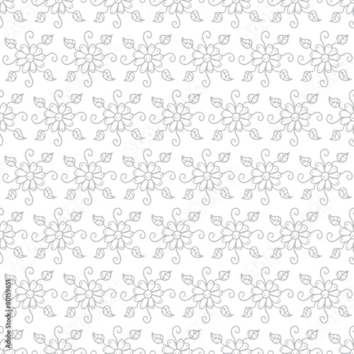 Vector pattern with hand drawn and spring flowers on white color