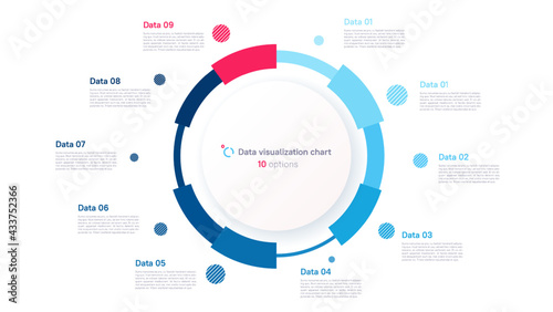 Vector pie chart infographic template in the form of pie chart divided by ten parts