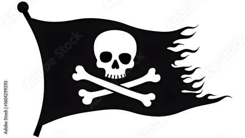 Vector Pirate Flag with Skull and Crossed Swords on Black Torn Fabric