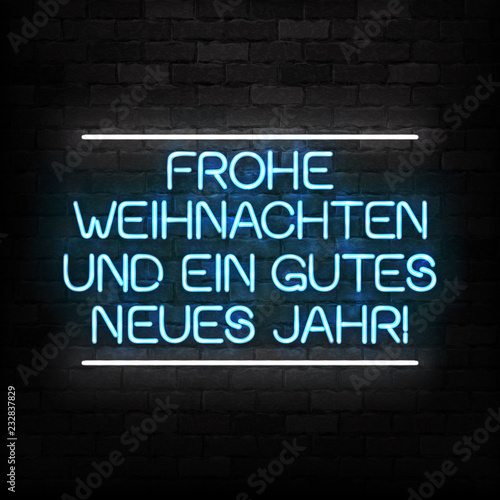 Vector realistic isolated neon sign of Merry Christmas in German logo for decoration and covering on the wall background. Concept of Happy New Year in Germany.