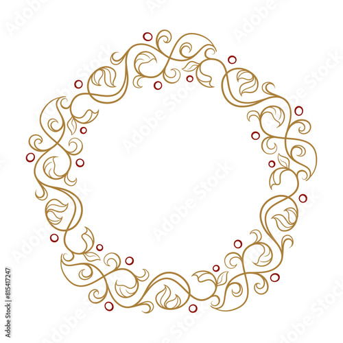 Vector round floral frame with ivy leaves decoration. Vintage style ivy stems wreath.