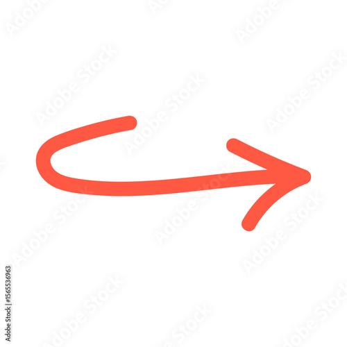 Vector scribble, bright red curved texture arrow pointing right